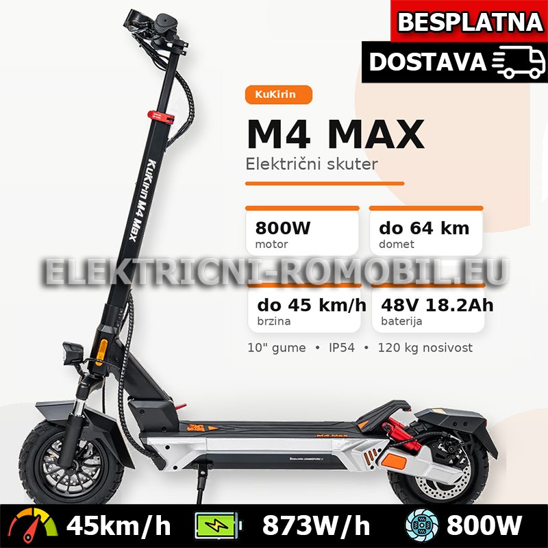 KuKirin M4 Max je odličan izbor za vozače koji žele više snage, bolji domet i stabilniji osjećaj u vožnji. Snažan motor, velika baterija, 10″ gume, ovjes i sklopivi dizajn čine ga vrlo atraktivnim rješenjem za gradsku vožnju, odlazak na posao i svakodnevno kretanje bez kompromisa.